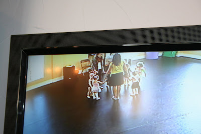 A view of the girls on a monitor